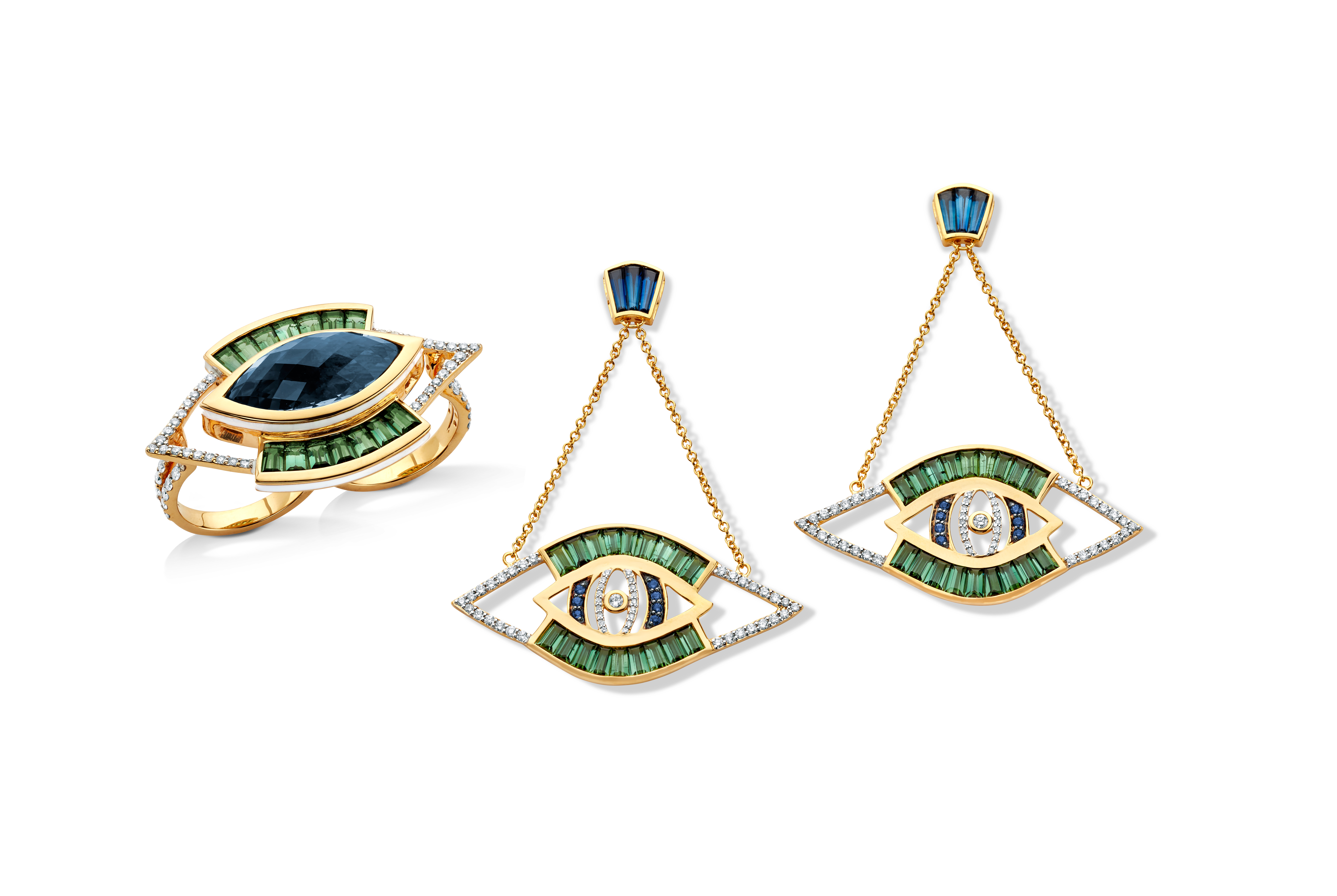 Shown: Eye catching earrings and ring from Buddha Mama.
